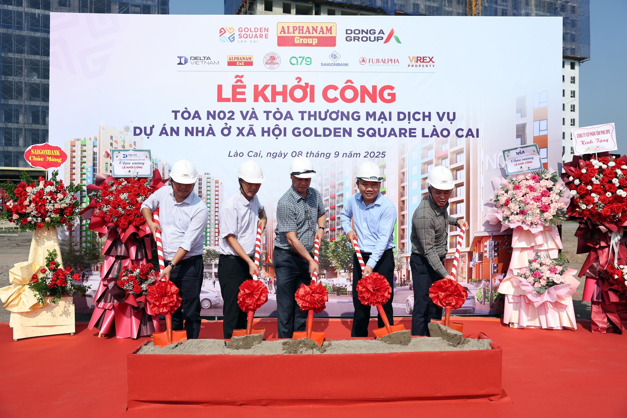 Hình ảnh các lãnh đạo vui mừng tham dự Lễ cất nóc dự án Sofitel Sa Pa & Residences do tập đoàn Alphanam đầu tư, phát triển