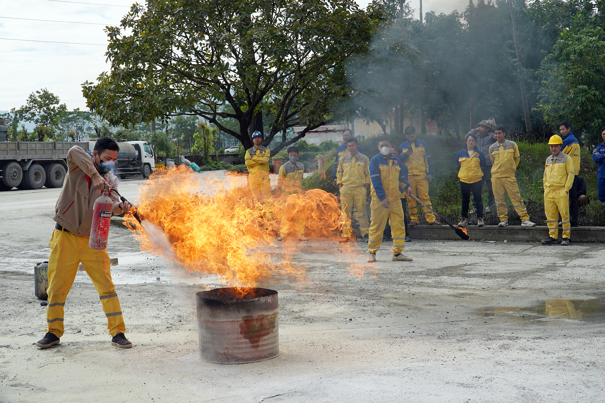 Nhằm nâng cao nhận thức và kỹ năng xử lý tình huống cho đội ngũ cán bộ công nhân viên, sáng ngày 21/11, Tập đoàn Xi Măng Hoàng Long đã tổ chức buổi tập huấn - diễn tập phương án phòng cháy chữa cháy (PCCC) tại nhà máy Xi Măng Nam Sơn với sự tham gia của các phòng ban khối văn phòng và bộ phận sản xuất.